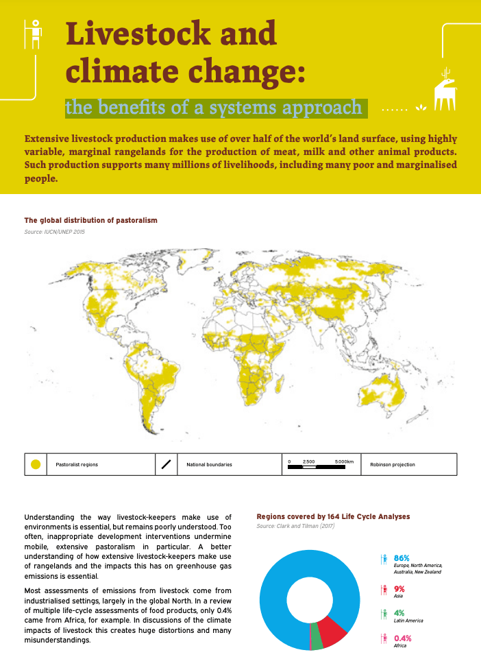Carefully managed herds in extensive, open-grazed and pastoral systems, on the other hand, can result in improved animal wellbeing and reduced methane emissions while also contributing to carbon sequestration, as well as to biodiversity, landscapes, livelihoods and cultural values. Livestock keepers’ practices and local knowledges of variable rangeland environments are central to climate mitigation efforts through livestock systems.
