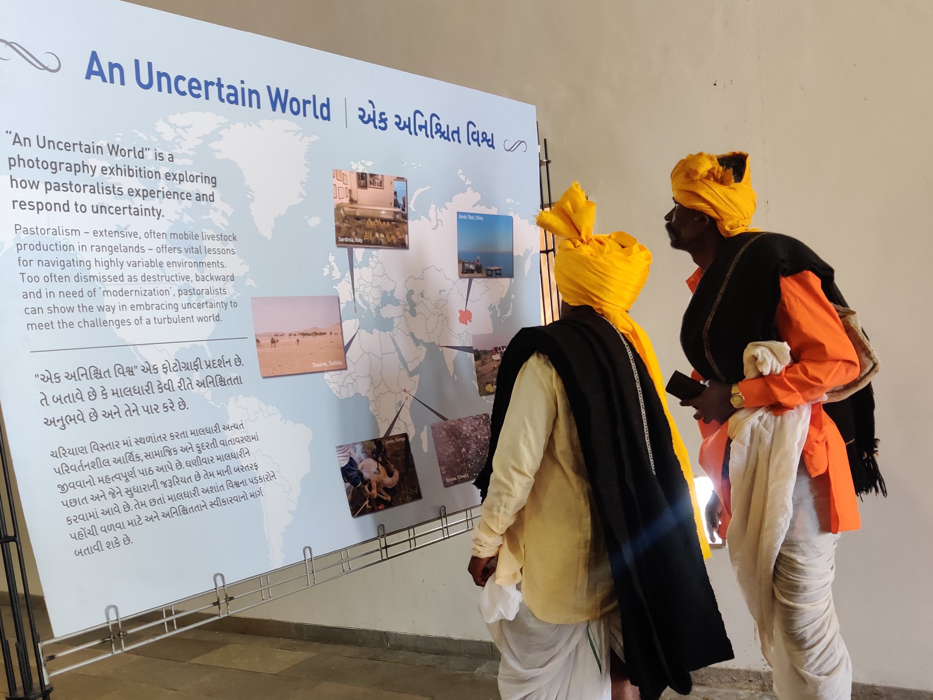 The physical interaction in Delhi with pastoralists followed important consultations held in Bhuj, Gujarat between 19-23 January, 2023, alongside the Living Lightly exhibition and Pastoral Youth Conclave, co-organized by Sahjeevan and Centre for Pastoralism, organisations working on the issues of pastoralism and rangelands in India for several years. The PASTRES team participated with the photo exhibition, An Uncertain World, and a presentation showcasing findings from research conducted with pastoralists from six countries across the globe.