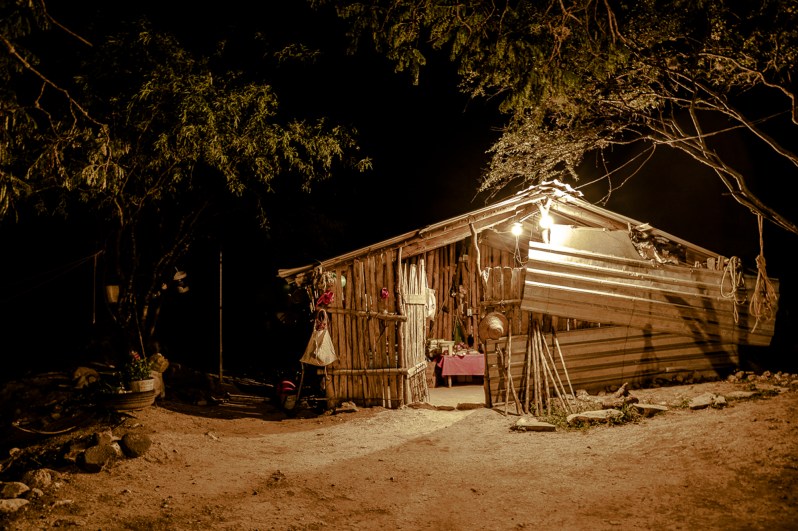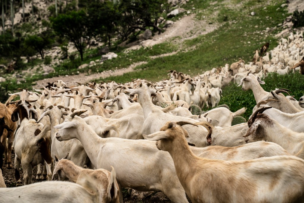 We lock the goats in the kraal, while the dogs patrol the area for coyotes. We eat frijoles and tortillas, and after a shot of aguardiente to warm up the cold night, I fall asleep to the sound of vehicle engines running tirelessly along the road.