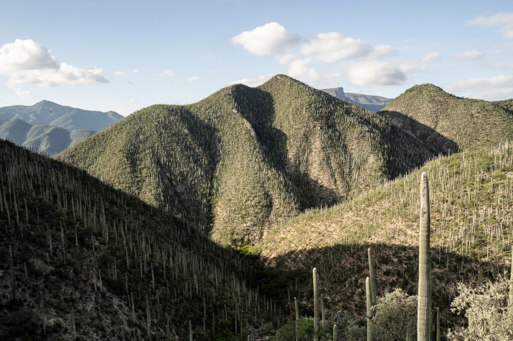 It is sunset, and a magnificent light plays on the cactuses. Leonel opens up to me, and tells me that he loves it here because they are far from the evil world, where there is violence and wars. He loves the peace, the silence and the tranquillity.