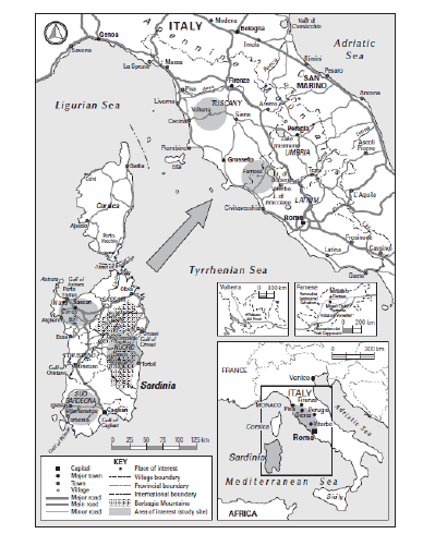 Agrarian reforms and industrial evolutions contributed to a dramatic restructuring of the agrarian world. For instance, in central Italy (Tuscany, Umbria and the Latium regions), many rural areas and villages experienced abandonment, particularly in communities situated in inner settings, presenting various forms of agro-ecological constraints to agricultural intensification (i.e., remote, mountainous, drier areas). This meant that Sardinian herding families could find a place to suit them and colonise the new local agro-ecological and socio-economic territories.
